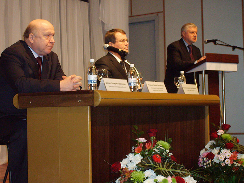 ![]() Встречи за закрытыми дверями22 января 2009, 03:12 Вчера в Саров приезжал с рабочим визитом Председатель Совета Федерации РФ Сергей Миронов (фото)Он посетил научно-производственные площадки Ядерного центра, музей ВНИИЭФ и побывал в главном конструкторском бюро РФЯЦ-ВНИИЭФ. Встречи прошли за закрытыми дверями. С.Миронов встретился с руководством РФЯЦ-ВНИИЭФ. Директор Ядерного центра выступил с докладом «Научно-техническая деятельность РФЯЦ-ВНИИЭФ». По словам Сергея Миронова, заслуги Федерального ядерного центра в создании надежного атомного щита страны и укреплении ее военной мощи неоспоримы. «Этот потенциал, к счастью, удалось сохранить», — подчеркнул спикер верхней палаты российского парламента. Он также отметил, что для этого необходимо сохранить атмосферу творческого научного поиска и создать все необходимые условия для жизни и работы ученых. «В том числе для талантливой молодежи, чтобы жить и работать в Сарове было не менее престижно, чем в Силиконовой долине», — подчеркнул Миронов. В интервью журналистам Миронов отметил, что он попросил специалистов РФЯЦ-ВНИИЭФ пригласить его на испытание новой техники. «То, что я увидел в Сарове, мне очень понравилось. Совет Федерации будет сотрудничать с ВНИИЭФ и помогать ему,» — в частности сказал спикер. «При всех негативных последствиях мирового финансового кризиса стоит использовать шанс чтобы перестроить нашу экономику с добывающей и переформатировать ее на обрабатывающую. Здесь главное слово за хайтеком, инновационными технологиями, за теми направлениями, которые мы называем инновационными направлениями, либо экономикой знания. Главное наше национальное достояние не углеводороды, не золото-валютные запасы, не минерально-сырьевой комплекс, а интеллект и духовность — наши главные конкурентные преимущества, — сказал Миронов. Визит в Саров завершился в Доме ученых, в зале которого присутствовали представители местного самоуправления, ученые и общественность.Встреча продолжалась около часа. В заключение С.Миронов вручил работникам РФЯЦ-ВНИИЭФ Благодарности Председателя Совета Федерации. ![]() ![]() //фото пресс-служб администрации Сарова, ВНИИЭФ, Губернатора НО Нет комментариев Написать | |||||