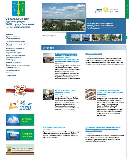 Сайт Заречного отличает обширный тематический рубрикатор: Победа, Год учителя, Перепись, интернет-приемная и т.п.
