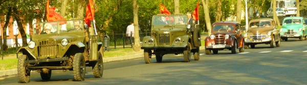 В сопровождении машин времен войны и современных автомобилей, вернувшихся из пробега Брест-Саров, колонна прошла по проспекту Ленина. В парадном строю по приказу командира дивизии генерал-майора Мингалеева перед горожанами промаршировали военнослужащие в/ч 3274.