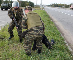 Напомним, как сообщали «Саровские новости», всю эту неделю на трассе М7 проходят милицейские учения . По замыслу организаторов учений милиционерам была объявлена ориентировка на якобы угнанную автомашину, пассажиры которой совершили ДТП и скрылись с места происшествия. К тому же, у предполагаемых преступников, возможно, имеется оружие. Сотрудники КПМ «Мячково» получили указанную ориентировку примерно в 12 часов, уже в 12:10 похожая автомашина появилась в общем потоке транспорта. Сотрудники поста заметили её и остановили транспортное средство. На просьбу милиционеров выйти из автомобиля и предъявить документы для проверки пассажир среагировал неадекватно — бросился бежать. Но слаженные действия сотрудников отряда милиции особого назначения и дорожно-патрульной службы УГИБДД позволили задержать обоих подозрительных гражданина и доставить в ОВД по Володарскому району для дальнейшей проверки. Угнанная автомашина под охраной военнослужащих внутренних войск осталась на КПМ дожидаться приезда следственно-оперативной группы, для последующего осмотра транспортного средства на предмет выявление оружия, взрывчатых и наркотических веществ. — Сегодня сотрудники милиции показали, что обладают хорошим набором знаний и навыков, которые успешно применяют в конкретных ситуациях, — отметил начальник отдела пропаганды безопасности дорожного движения УГИБДД по Нижегородской области Игорь Михайлушкин. http://nnov.kp.ru/online/news/144587